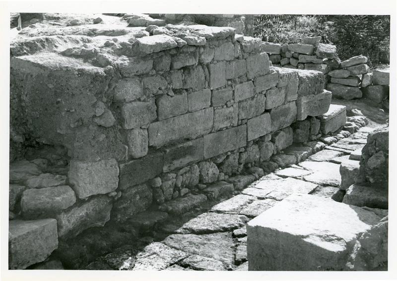 Excavation photo, Pillar Hall, LM II division walls. In publication, Plate 29d (cropped).