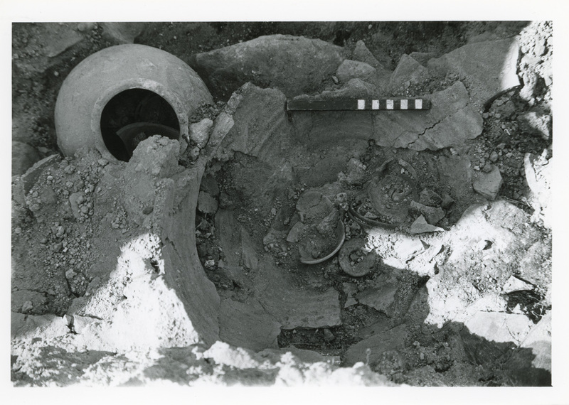 Excavation photo, cist from Room C. In publication, Plate 23c.