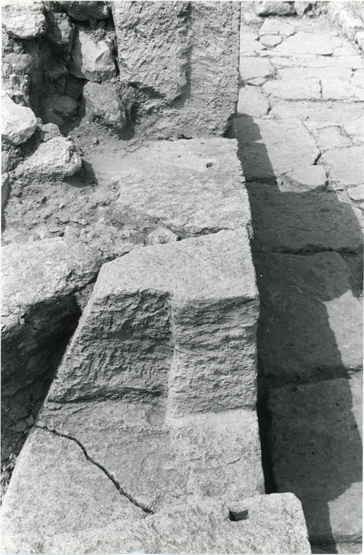 Excavation photo, North façade and North corridor, gypsum stand and stone spill. In publication, Plate 22c.