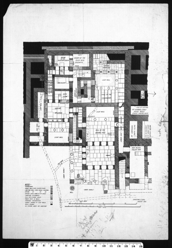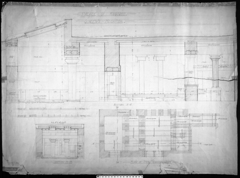 Drawn and printed plans, sections, elevations related to the Queen's Megaron.