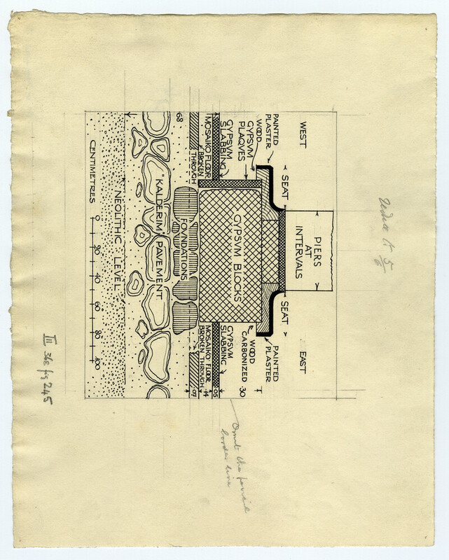 Drawing of a Plan, Section and Elevation of the Queen's Megaron in the Palace at Knossos (preferred (descriptive))