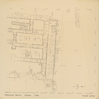 - The Unexplored Mansion was discovered by Evans in 1908 when, continuing his excavation of the Little Palace, he examined the space west of it. The complex, apart from one room looked by Evans, remained unexplored until 1967, when the British School at Athens committee and the Ephorate of Antiquities of Heraklion approved it’s excavation under Mervyn Popham’s direction (Excavation 1976-1973). The Mansion was built in Late Minoan IA (1600-1500 BC) but never completed at the time, occupied and destroyed by a fierce fire within Late Minoan II (1450-1400 BC), partly used in Late Minoan IIIA (1400-1300 BC), and finally abandoned, after further mishaps, in Late Minoan IIIB (1300-1200BC). The Mansion was a well-built edifice originally perhaps constructed as a storage and industrial annexe to the Little palace, to which it was connected by a bridge. The Late Minoan II destruction deposits yielded impressive artefactual assemblages, mostly fallen from the upper floor into the rooms below, including masses of fine pottery, some of outstanding quality, storage containers, frescoes, figurines, and various other small finds. The rich bronzes and metalworking equipment were discussed by Hector Catling, who argued for the presence of a bronzesmith’s workshop engaged in the manufacture of weaponry. Fine metalwork, up to fifty years old, was collected as scrap metal and intended for re-melting. This metallurgical activity was associated with the assumed arrival of the Mycenaeans, who introduced new material expressions of political and social status, expressions emphasising the display of fine weaponry, deposited in the so-called Warrior Graves prominent at Knossos in LM II-IIIA. Directly over the ruins of the Unexplored Mansion was excavated part of the city of historical times, inhabited from the Sub-Minoan period to the early 3rd century CE.