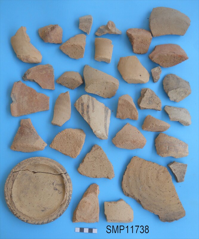 Base, body, rim and handle fragments. Coarse ware.