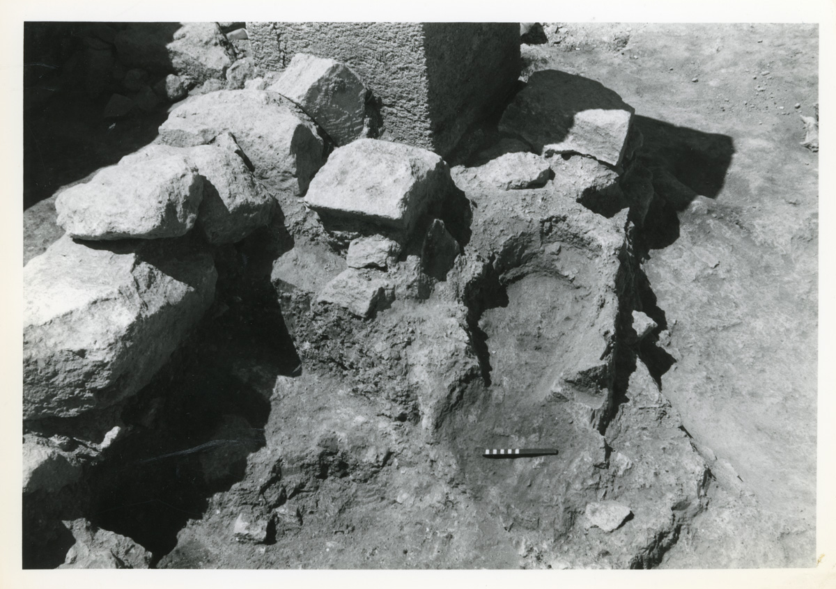 - Excavation photo, Pillar Hall, clay hearth. In publication, Plate 29e.