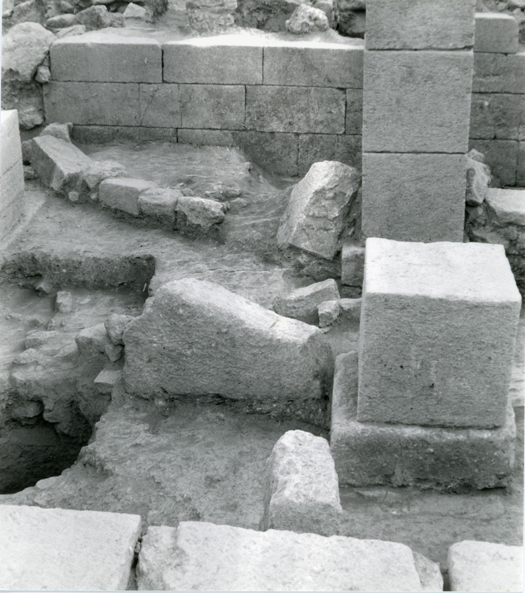- Excavation photo, Pillar Hall, LM II division walls. In publication, Plate 29b.