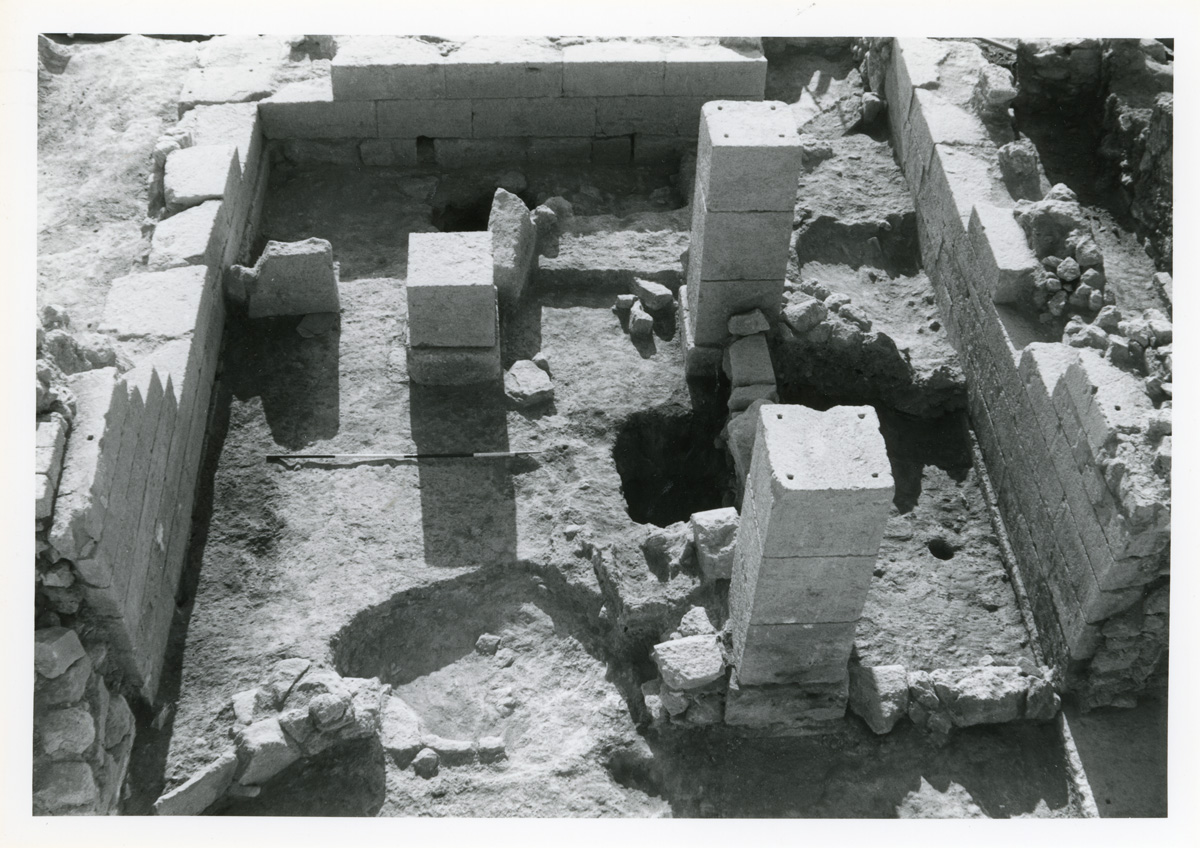 - Excavation photo, Pillar Hall, LM II division walls. In publication, Plate 29d.