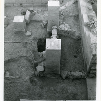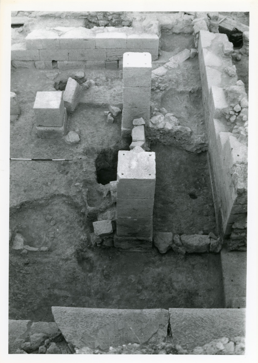 - Excavation photo, Pillar Hall, LM II division walls. In publication, Plate 29d (cropped).