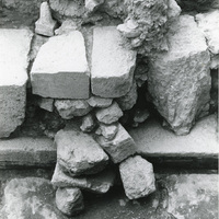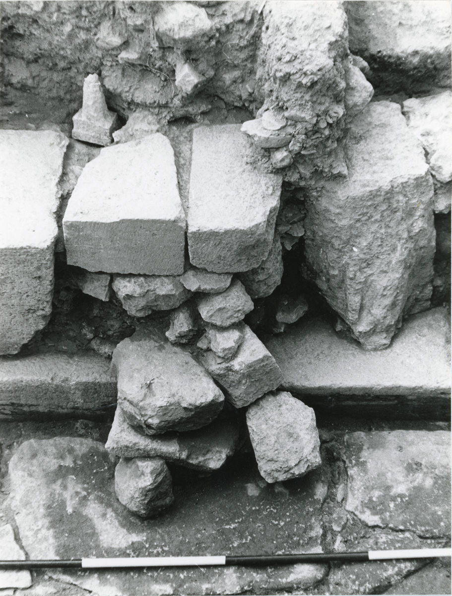 - Excavation photo, North façade and North corridor, gypsum stand and stone spill