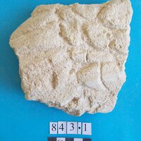 - Possible wing. Scale pattern carved on both sides
