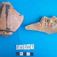 - Decorated base and body sherd