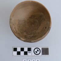 - Plain footed goblet in brownish and burnished ware. Partly recomposed. One small perforation in the wall.