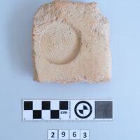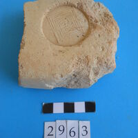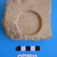 - Corinthian pan tile with round stamp. Another fragment with round stamp with labyrinth.
