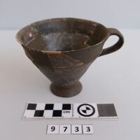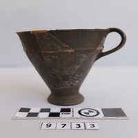 - Short-rimmed angular cup. Foot