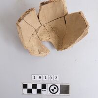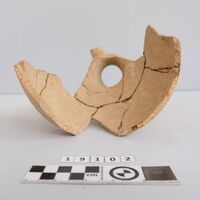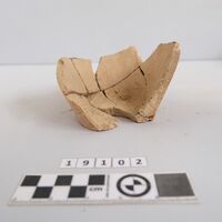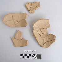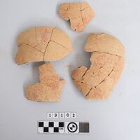 - partly restored. Eight loose sherds. Red monochrome slip on the outside.