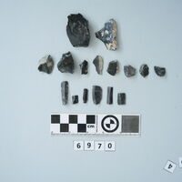 - Five flakes and four big fragments of obsidian. Also six prismatic blades