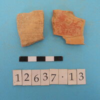 - Rim fragment with moulding and one coarse incised bodysherd.