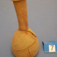 - Clay unguentarium. Base and lower body missing. Washed and mended.