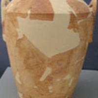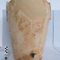 - Straight-sided . Figured scenes on both sides: nature goddess on wheeled platform.