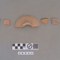 - One half preserved conical cup with everted walls and several fragments of cups