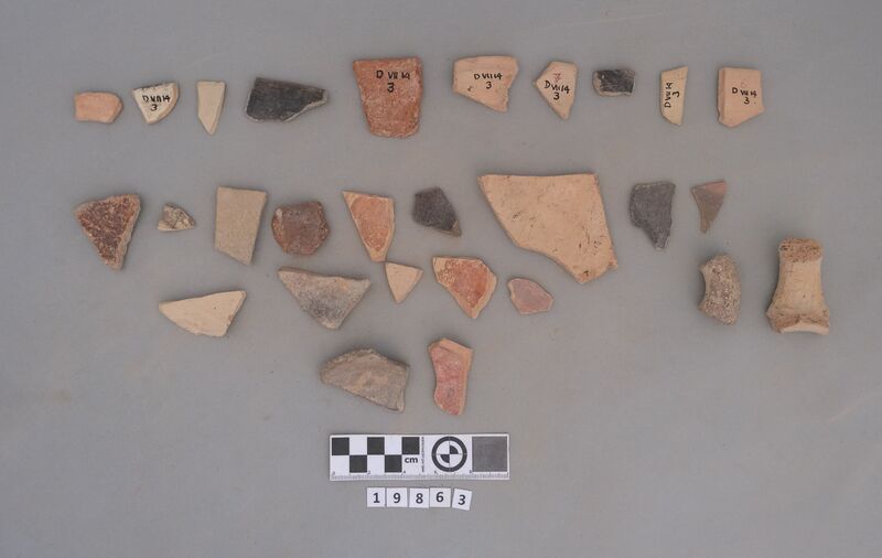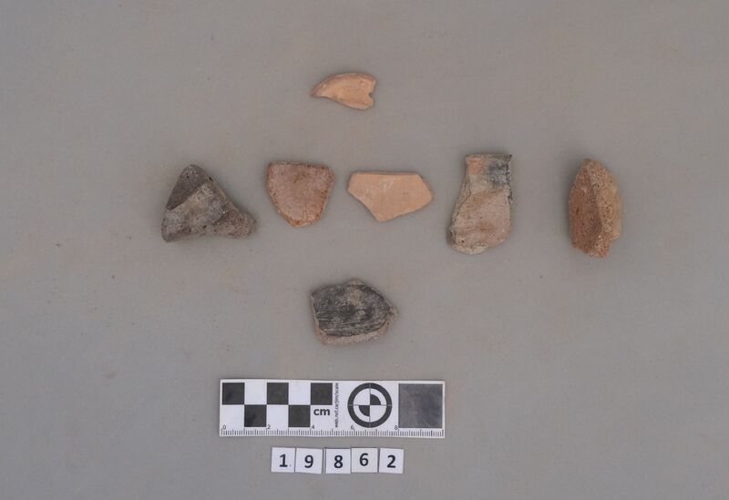 Five sherds of Neolithic open vessels and two sherds of Minoan cups (conical cup and footed goblet)