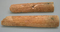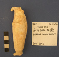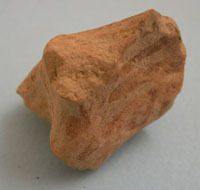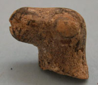 Fragment of animal (horse) figurine. Top of front legs and mane. Head and rest of body missing.