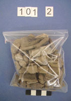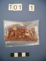 Tile from centre of pot clusters part of hellenistic burial? Back of label: This must=larnax foot.