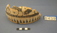 Flat bottomed. Recomposed including base and lower wall. Corinthian type.
