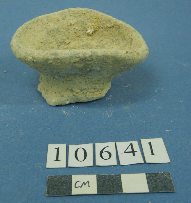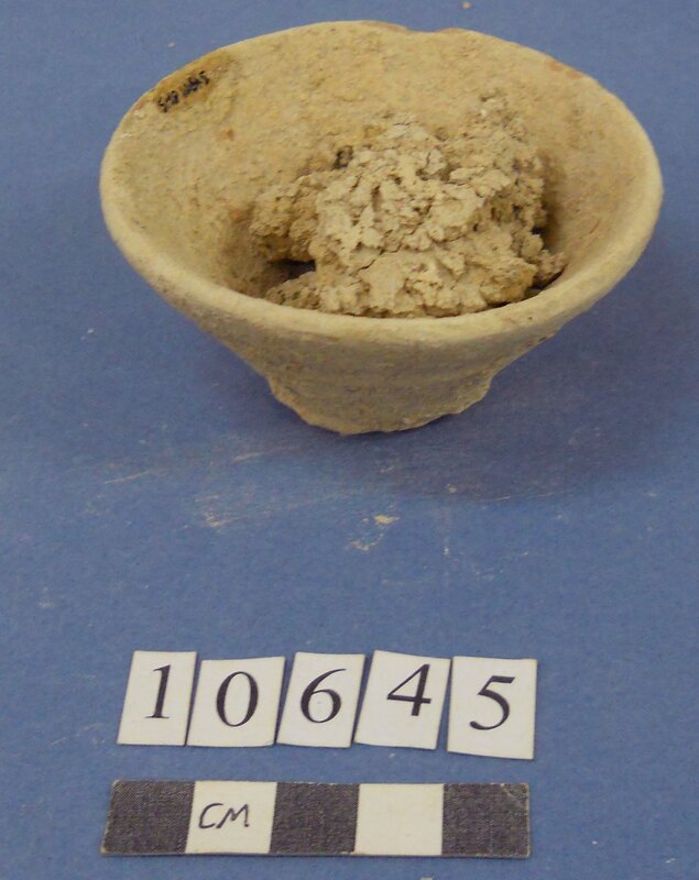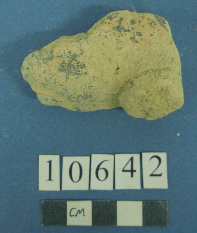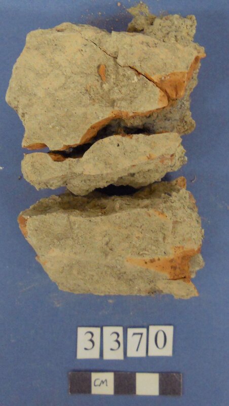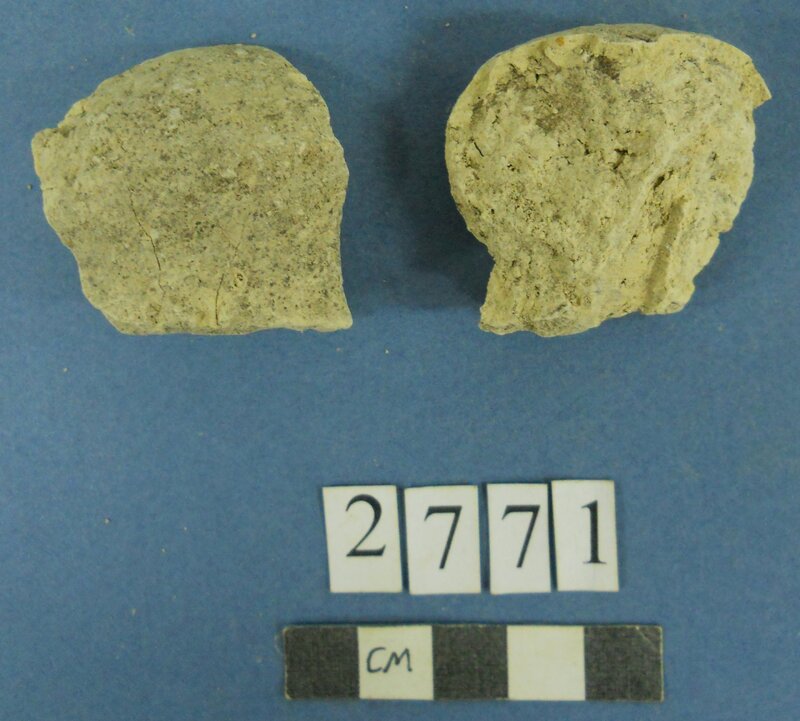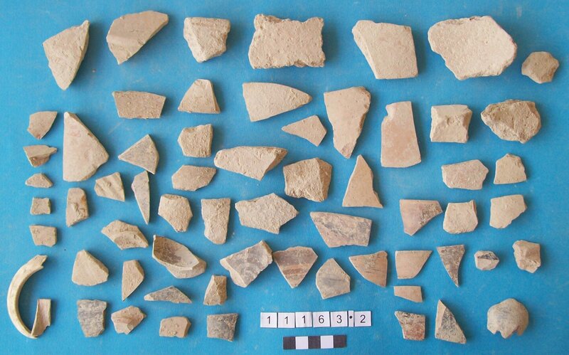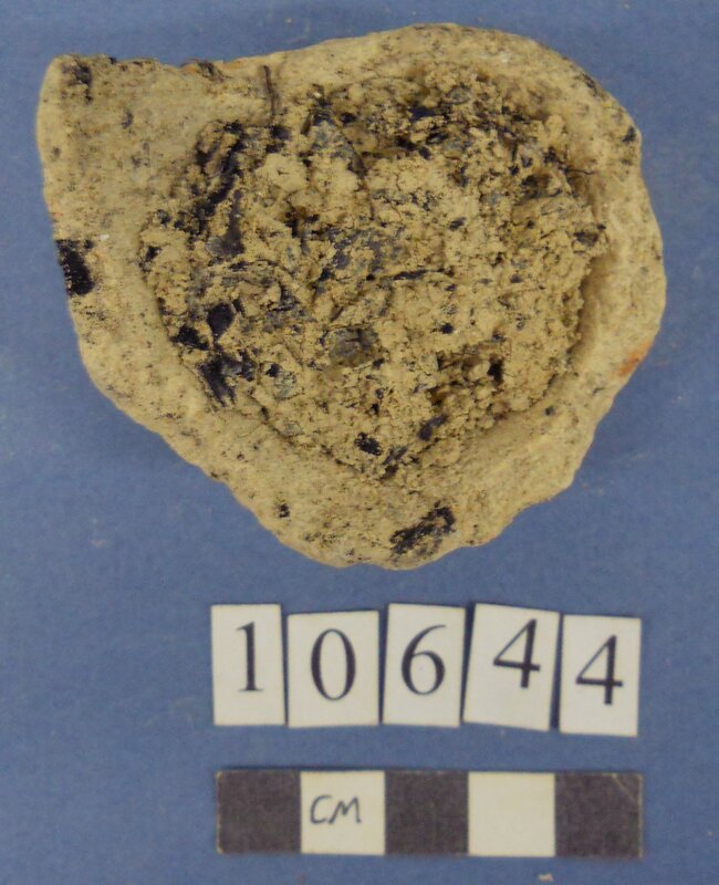 Fragments from at least 3 different vessels. 1 opaque blue tessera