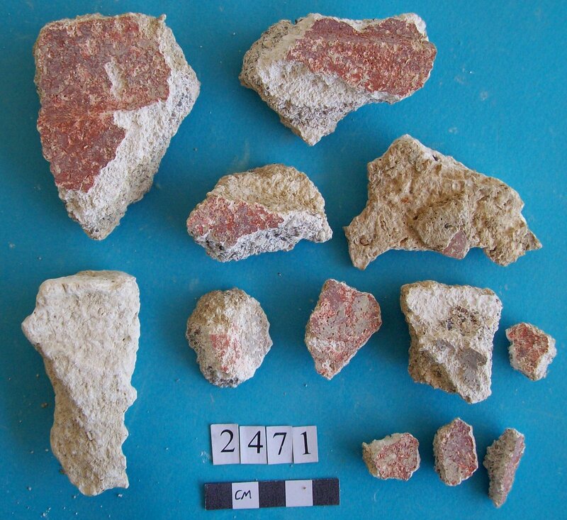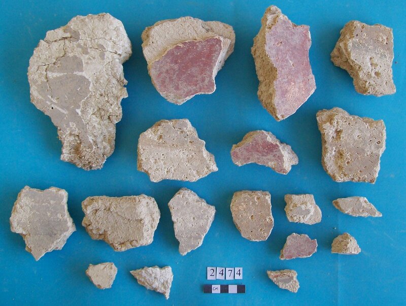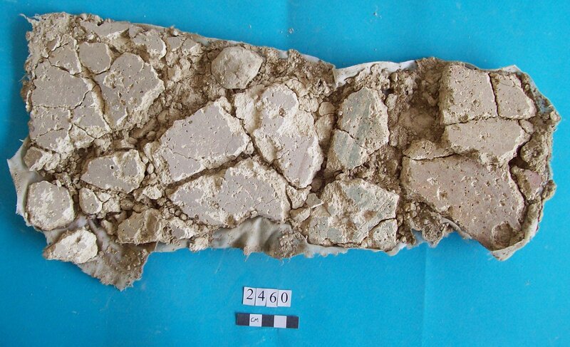 Large-scale. Polychrome band decoration. Lifted from excavation in gypsum support