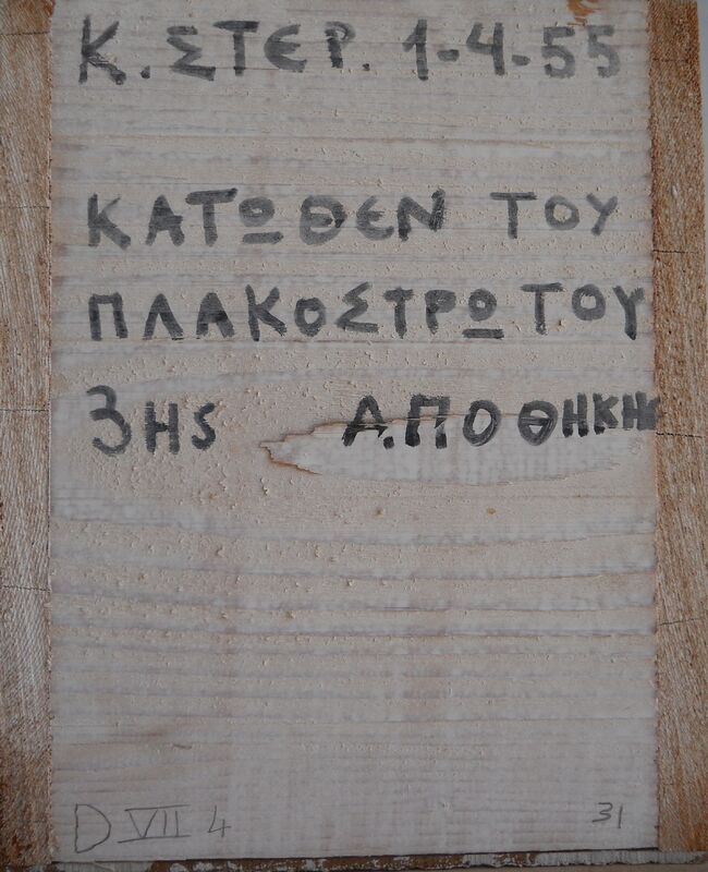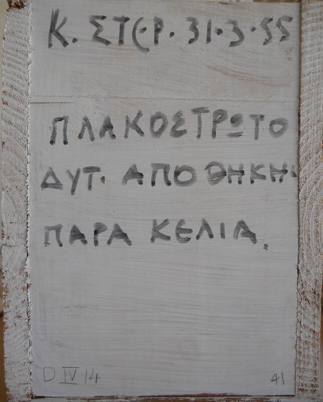 Κ.ΣΤΕΡ. 31/3/55 ΠΛΑΚΟΣΤΡΩΤΟ ΔΥΤ. ΑΠΟΘΗΚΗΣ ΠΑΡΑ ΚΕΛΙΑ (= KNOSSOS RESTORATION
