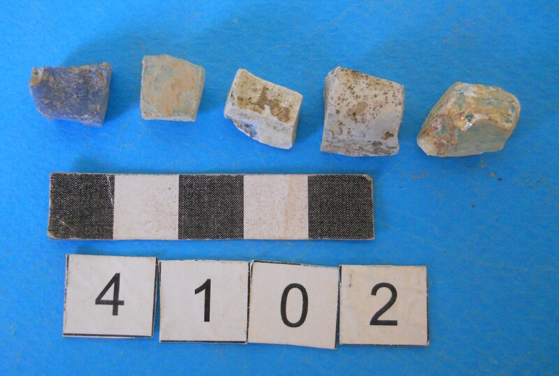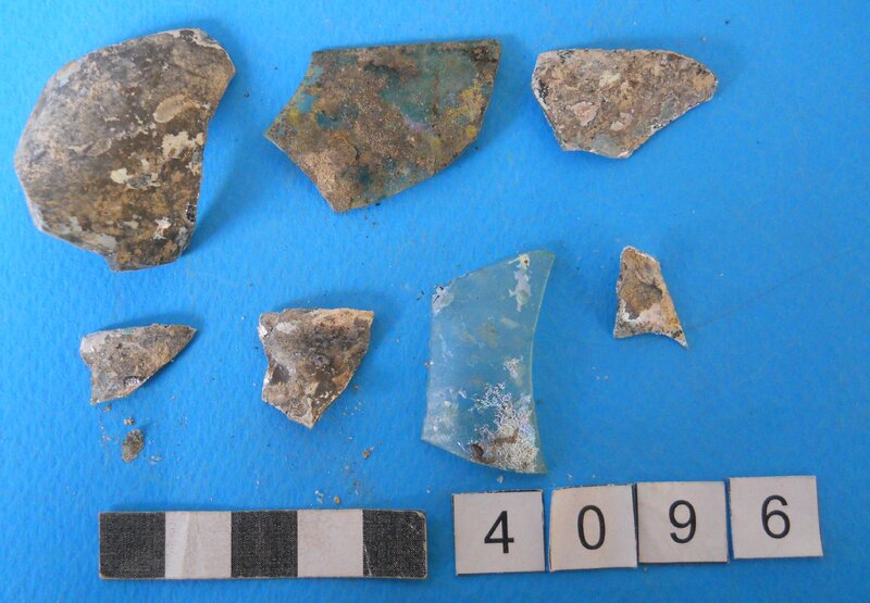 On box: No label but likely to be glass from the Roman levels. I doubt if it is from the archaic dig. It is more likely to be from the kiln and cistern dig 1937/4 so I am putting it with those boxes- C W Hutchison 110 1937/2?