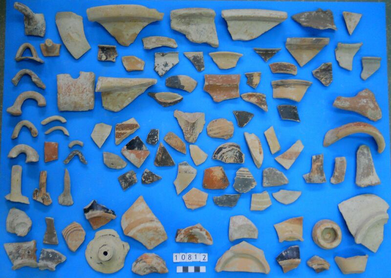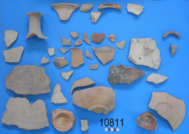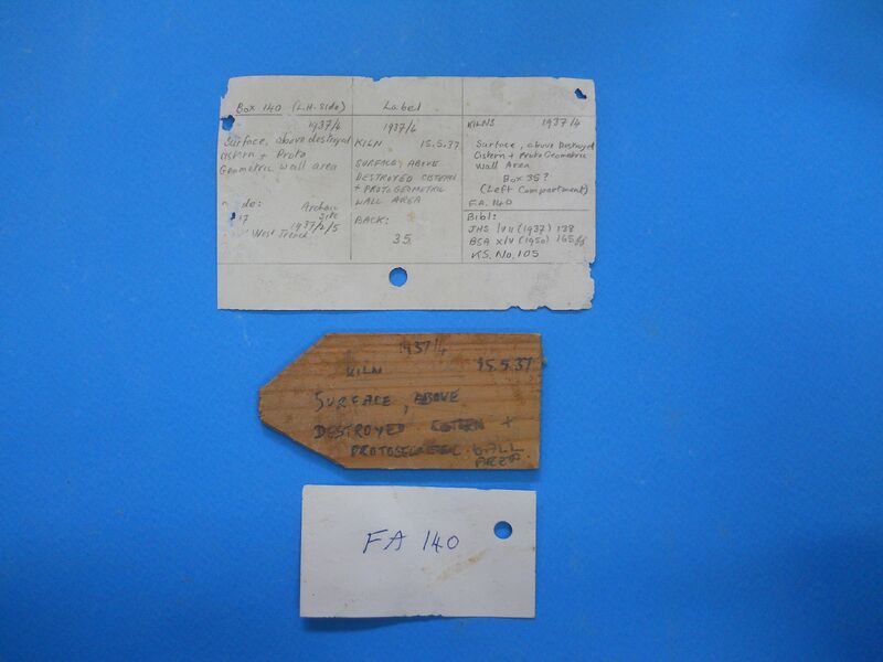 Kilns 1937/4. Left compartment - Surface above destroyed cistern and ProtoGeometric wall area. Box 35? Right compartment - From destroyed cistern. SMP10812-13; SMT2811-2; SMS986; SML1304
