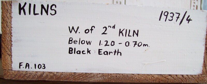 Kilns 1937/4 W. of 2nd Kiln. Below 1.20-0.70 m. Black Earth SMP10778; 10778.1; SMS980