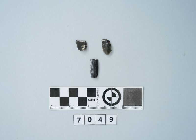 One flake and two prismatic blades fragments.