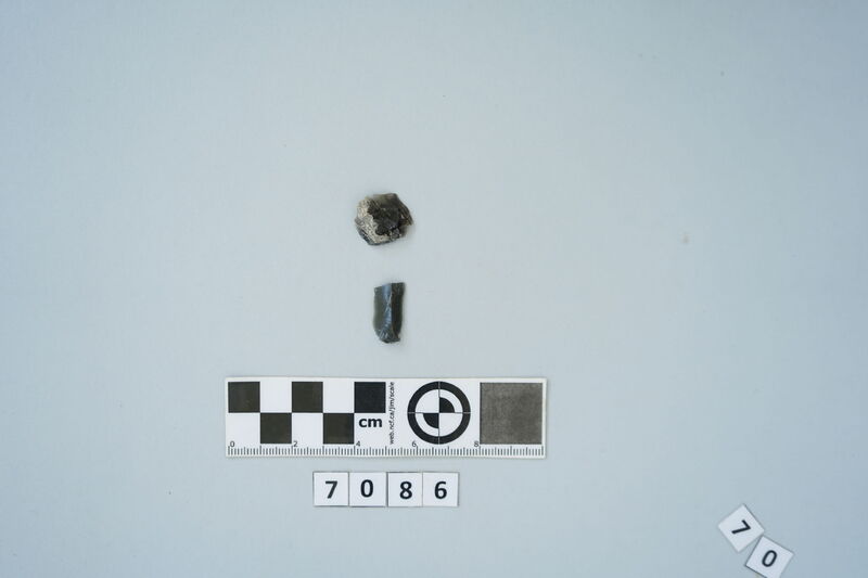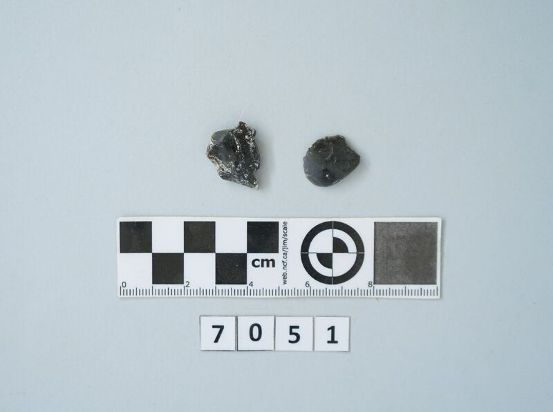 Two obsidian flakes.
