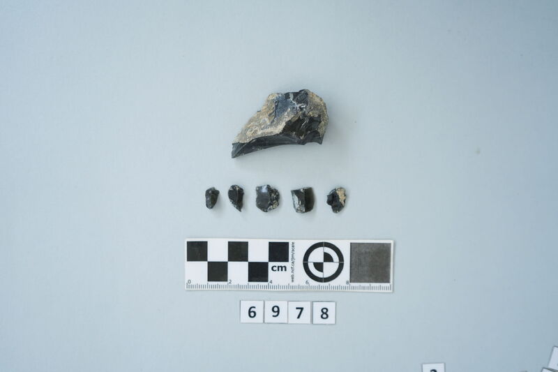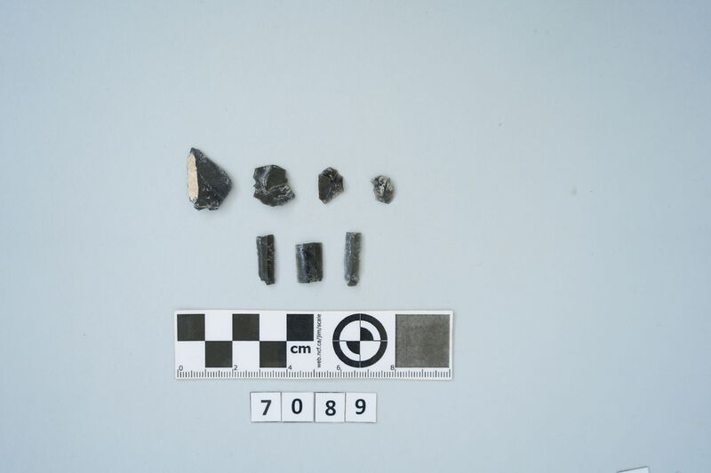 Five obsidian flakes and three blades fragments
