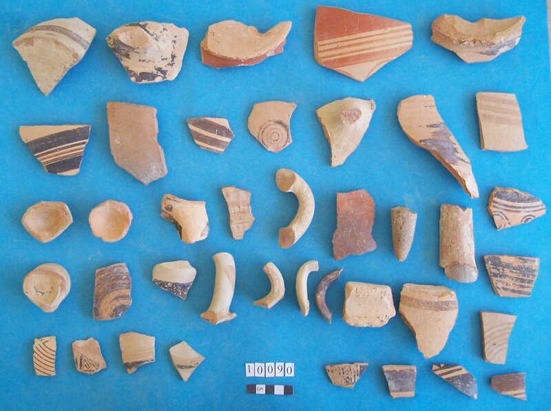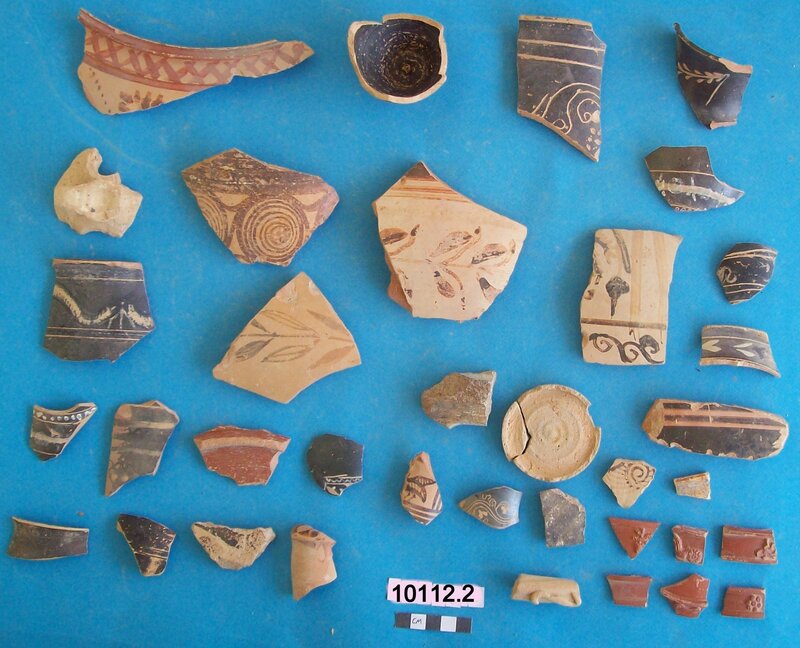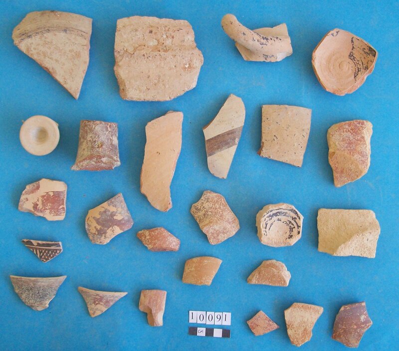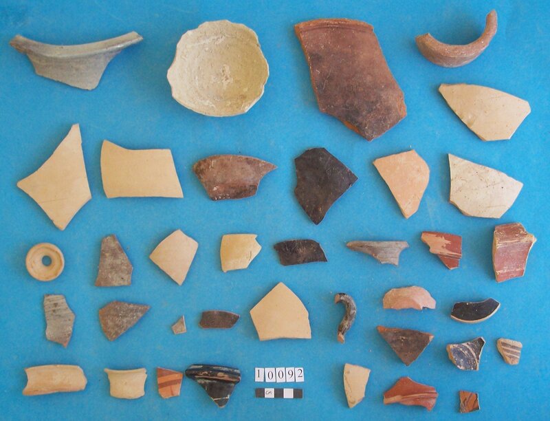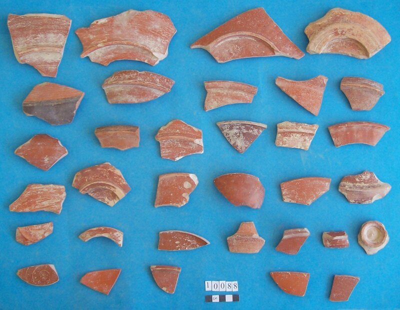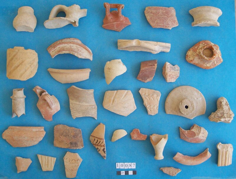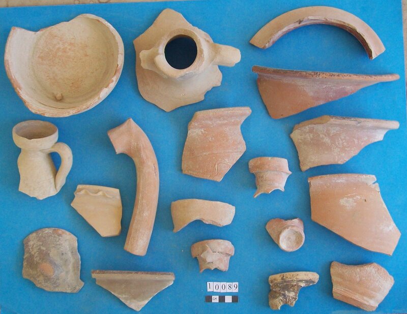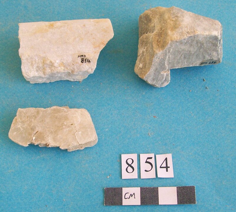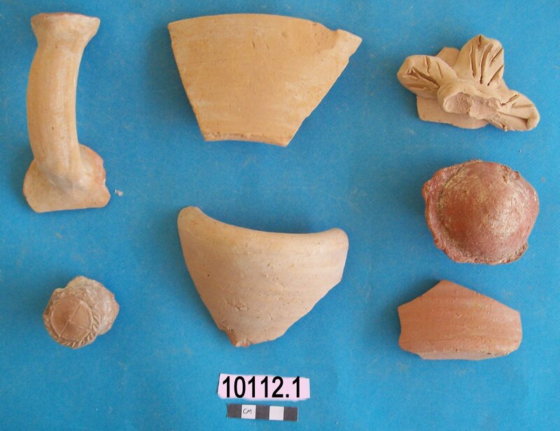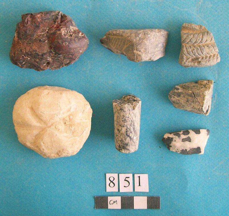 Various objects including stem of vessel and fossil