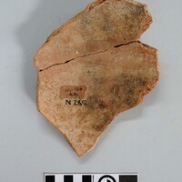 - Two joining sherds of a closed vessel in semi-fine red fabric. Impressed decorations on the outside obtained with nails and fingers.