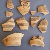 - cream clay. Black paint: rim band on interior; exterior has rim band