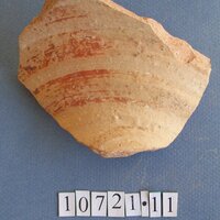 - pink clay. Orange paint: spirals on interior; bands and spirals on exterior