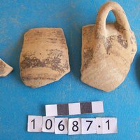 - buff clay. Black paint: solid interior; exterior solid on upper body except for reserved area behind handle.
