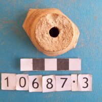 - buff clay. Brown paint on exterior: band on base and solid stem.