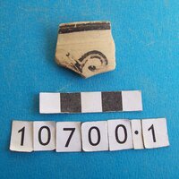 - buff clay. Black lustrous paint: interior rim band; exterior with rim band and lilly.
