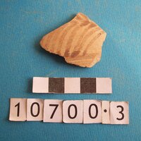 - fine cream clay. Brown-black paint: solid interior; exterior has a band of horizontal chevrons with two linear bands below.