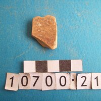 - pink-cream clay. Brown paint: solid interior; exterior with hatched zigzag.