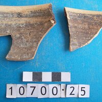 - hard-fired. Brown-black paint: solid interior; exterior with rim band and wavy horizontal line.