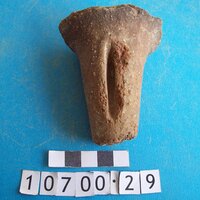 - orange-brown clay. Vertical groove on outer face. Plain.