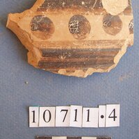 - buff clay. Black paint on exterior. Bands framing a row of solid circles
