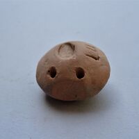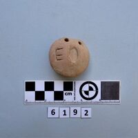 - A circular loomweight with a rounded surface