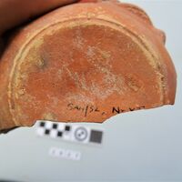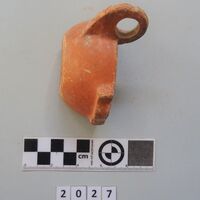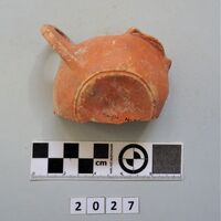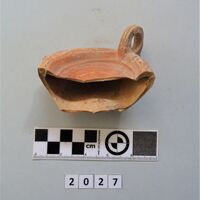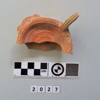 - rounded handle. Slightly concave base. Wide shoulder with moulding. Wide discus with concentric circles.